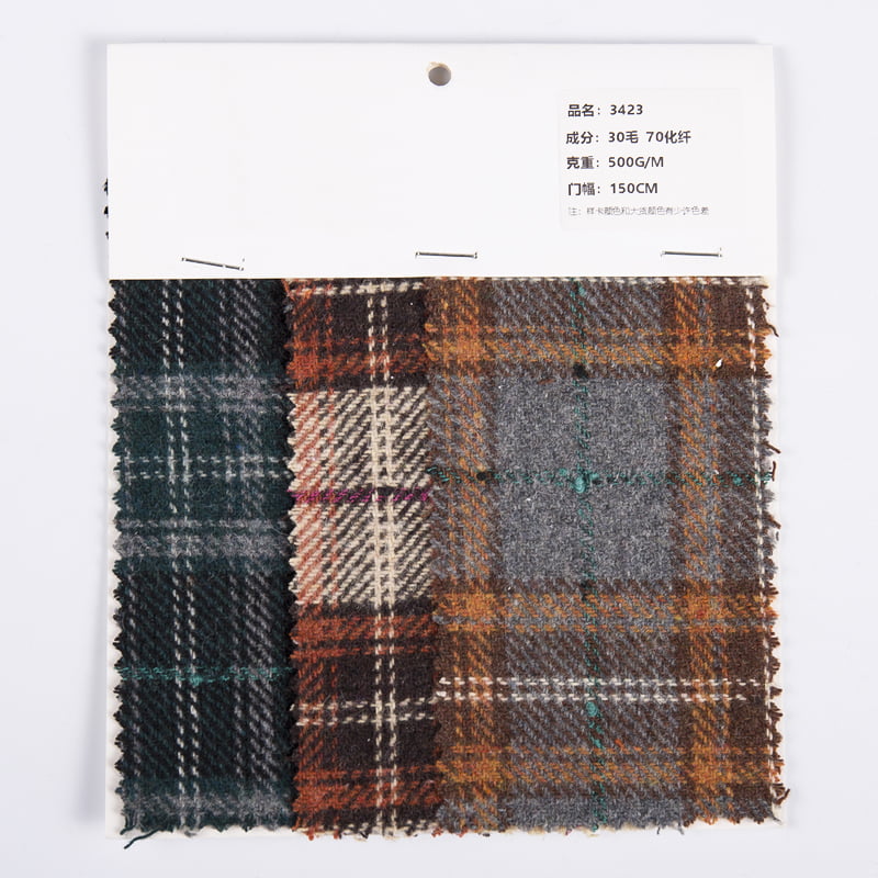 ผ้าทวีดผ้าขนสัตว์ลายสก๊อตคลาสสิกสำหรับเสื้อผ้าในฤดูหนาว 3423 ใช้การออกแบบลวดลายลายสก๊อตคลาสสิก องค์ประกอบนี้มีประวัติศาสตร์อันยาวนานในอุตสาหกรรมแฟชั่นและยังคงรักษาเสน่ห์และสถานะที่เป็นเอกลักษณ์ไว้เสมอ ด้วยเทคโนโลยีการทอผ้าชั้นดี ลวดลายลายสก๊อตจึงถูกนำเสนอบนเนื้อผ้าอย่างชัดเจน ซึ่งไม่เพียงแต่คงเสน่ห์แบบย้อนยุคของเสื้อผ้าแบบดั้งเดิมเท่านั้น แต่ยังรวมเอาความเรียบง่ายและแฟชั่นของการออกแบบสมัยใหม่ ทำให้ผ้าเป็นที่จดจำและน่าดึงดูดสายตาอย่างมาก ในแง่ของวัสดุ ผ้า 3423 เลือกใช้ขนสัตว์คุณภาพสูง 30% เป็นวัสดุหลัก เนื่องจากเป็นวัสดุฉนวนความร้อนตามธรรมชาติ ผ้าขนสัตว์จึงมีคุณสมบัติดูดความชื้นและระบายอากาศได้ดี ซึ่งสามารถล็อคอุณหภูมิของร่างกายได้อย่างมีประสิทธิภาพ และมอบความอบอุ่นและความสบายแก่ผู้สวมใส่ได้ยาวนาน ในขณะเดียวกัน สัมผัสที่นุ่มนวลของผ้าขนสัตว์ยังช่วยปรับปรุงความเป็นมิตรต่อผิวหนังและประสบการณ์การสวมใส่ของผ้าอย่างมาก เพื่อเพิ่มประสิทธิภาพการใช้งานจริงและความทนทานของเนื้อผ้า จึงได้เพิ่มส่วนประกอบเส้นใยเคมีคุณภาพสูง 70% ลงในเนื้อผ้า 3423 วัสดุเส้นใยเคมีขึ้นชื่อในด้านความทนทานต่อรอยยับและการสึกหรอได้ดีเยี่ยม ซึ่งช่วยให้มั่นใจได้ว่าผ้าจะคงความเรียบและเงางามในระหว่างการใช้งานในระยะยาว และไม่เสี่ยงต่อการเสียรูปหรือการสึกหรอ นอกจากนี้ลักษณะการดูแลง่ายของวัสดุเส้นใยเคมียังทำให้ผ้าดูแลรักษาง่ายขึ้นและเหมาะสมกับวิธีการซักต่างๆ ซึ่งช่วยยืดอายุการใช้งานของเสื้อผ้าได้อย่างมาก