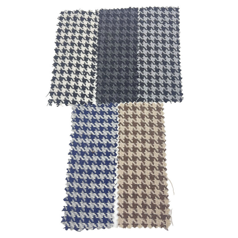 ผ้านี้ซึ่งกำหนดไว้ในมาตรา 3946 เป็นผ้าทอที่ประกอบด้วยขนสัตว์ 10% และเส้นใยอื่นๆ 90% ด้วยมวลต่อหน่วยพื้นที่ 450 กรัม/ตารางเมตร จึงมีโครงสร้างที่มีน้ำหนักปานกลาง พื้นผิวสีเทาเข้มมีลวดลายลายฮาวด์สทูธ ซึ่งสร้างขึ้นด้วยเทคนิคการทอแบบเฉพาะที่ทำให้เกิดลายหมากรุกหรือรูปทรงสี่แฉก ลวดลายเรขาคณิตสุดคลาสสิกนี้โดดเด่นด้วยเอฟเฟกต์โทนสีที่ตัดกันซ้ำๆ ส่วนประกอบของผ้าวูลผสมช่วยควบคุมความร้อนและความยืดหยุ่นของผ้า คุณลักษณะทางเทคนิคเหล่านี้ส่งผลให้ได้วัสดุที่มีรูปแบบข้อต่อที่ชัดเจนและความทนทานของโครงสร้าง ทำให้ใช้ได้กับเสื้อมีฮู้ดที่ต้องการคำจำกัดความของรูปแบบที่มองเห็นได้และประสิทธิภาพในระยะยาว