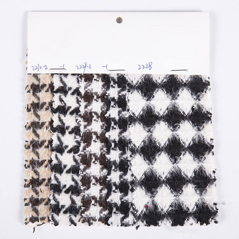 คุณสมบัติที่โดดเด่นของ Long Hair Diamond Houndstooth Tweed Fabric 2230/2229/2228 คือเทคโนโลยีการประมวลผลผมยาวอันเป็นเอกลักษณ์ ซึ่งผสมผสานรูปทรงเพชรคลาสสิกและลวดลาย Houndstooth เข้าด้วยกันเพื่อสร้างเอฟเฟกต์ภาพแบบเย็บปะติดปะต่อกันและเป็นชั้นๆ การออกแบบที่เป็นนวัตกรรมใหม่นี้ไม่เพียงแต่ทำให้เนื้อผ้าได้รับการยอมรับในระดับสูง แต่ยังทำให้มีความโดดเด่นจากผลิตภัณฑ์อื่นๆ ที่คล้ายคลึงกันอีกด้วย จากมุมมองขององค์ประกอบของวัสดุ ผ้านี้ทำจากวัตถุดิบเส้นใยเคมี 100% ทำให้มั่นใจได้ว่ามีคุณสมบัติทางกายภาพที่ดีเยี่ยมและมีเสถียรภาพทางเคมี วัสดุไฟเบอร์เคมีที่ทนทานต่อการสึกหรอ ต้านทานรอยยับ และดูแลรักษาง่าย ช่วยให้ผ้านี้รักษารูปทรงที่คมชัดและสีสดใสตลอดการใช้งานในระยะยาว ในเวลาเดียวกัน การดูดความชื้น การระบายอากาศ และตัวชี้วัดอื่นๆ ของเส้นใยเคมีได้รับการควบคุมอย่างเข้มงวดเพื่อให้แน่ใจว่าได้รับประสบการณ์ที่สบายเมื่อสวมใส่ งานฝีมือของทวีตขนยาวเพชรฮาวด์ทูธก็น่ายกย่องเช่นกัน การใช้เทคโนโลยีและอุปกรณ์สิ่งทอขั้นสูงช่วยให้ผ้ารักษาเนื้อผ้าที่หยาบในขณะที่ยังมีสัมผัสที่ละเอียดอ่อน เส้นด้ายยืนและเส้นพุ่งพันกันแน่นและสม่ำเสมอ ทำให้มั่นใจถึงความแข็งแรงและความมั่นคงของผ้า ในแง่ของการใช้งาน ผ้าทวีตเพชร Houndstooth ผมยาวถูกนำมาใช้กันอย่างแพร่หลายในแฟชั่นโอต์กูตูร์ ชุดสูทที่หรูหรา และผ้าตกแต่งต่างๆ เนื่องจากมีการออกแบบที่เป็นเอกลักษณ์และประสิทธิภาพที่ยอดเยี่ยม