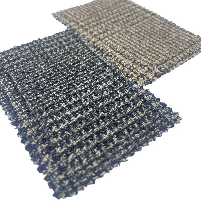 ผ้านี้ตามมาตรา 4336 เป็นผ้าทวีตที่ประกอบด้วยขนสัตว์ 5% และเส้นใยอื่นๆ 95% ด้วยมวลต่อหน่วยพื้นที่ 550 กรัม/ตารางเมตร จึงมีโครงสร้างแบบหนา พื้นผิวสีดำและสีน้ำตาลผสมผสานลายตารางหมากรุกเข้ากับลวดลายฮาวด์สทูธ ผสมผสานกับเส้นด้ายโลหะในระหว่างกระบวนการทอผ้า เทคนิคนี้สร้างดีไซน์แบบผสมผสานที่เน้นลวดลายเรขาคณิตด้วยองค์ประกอบสะท้อนแสง การรวมเส้นด้ายโลหะเข้าด้วยกันทำให้เกิดภาพที่ตัดกันกับฐานแบบทอ ข้อกำหนดทางเทคนิคส่งผลให้ได้วัสดุที่มีความซับซ้อนในการมองเห็นหลายชั้นและความหนาแน่นของโครงสร้าง ทำให้สามารถนำไปใช้กับโครงการที่จำเป็นต้องมีการเชื่อมต่อของรูปแบบและความแปรผันของพื้นผิว
