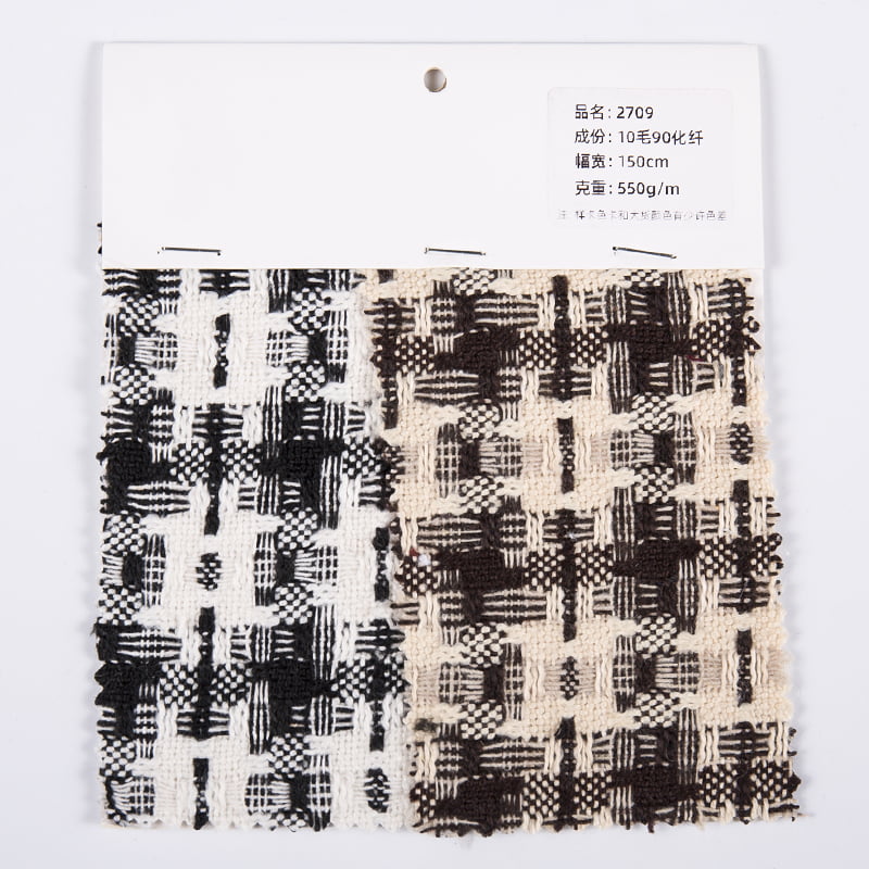 ผ้าขนแกะ Jacquard ลายตาราง 2709 เป็นผ้าคุณภาพสูงที่ออกแบบมาเป็นพิเศษสำหรับตลาดสิ่งทอสมัยใหม่ ผ้าทั้งสองชนิดนี้ใช้เทคโนโลยีแจ๊คการ์ดขั้นสูงเพื่อผสมผสานลวดลายลายสก๊อตเล็กๆ น้อยๆ เข้ากับโครงสร้างผ้าอย่างชาญฉลาด ซึ่งไม่เพียงแต่ปรับปรุงการมองเห็นเป็นชั้นๆ และการแสดงรายละเอียดเท่านั้น แต่ยังปรับปรุงเนื้อผ้าอย่างมีนัยสำคัญผ่านเทคนิคการทอแบบสามมิติอีกด้วย ประสบการณ์สัมผัส ในแง่ขององค์ประกอบของวัสดุ ซีรีส์ 2709 ใช้วัสดุผสมที่คัดสรรมาอย่างเข้มงวดเพื่อให้แน่ใจว่าประสิทธิภาพโดยรวมของเนื้อผ้ามีความเหมาะสมที่สุด โดยเฉพาะผ้าทั้งสองมีขนสัตว์ธรรมชาติ 10% ผ้าขนสัตว์มีชื่อเสียงในด้านการเก็บความอบอุ่น ระบายอากาศได้ดี และสัมผัสที่อ่อนโยนต่อผิวหนัง ช่วยให้เนื้อผ้าคงความสบายและอบอุ่นในฤดูหนาว ในขณะเดียวกัน คุณสมบัติตามธรรมชาติของขนสัตว์ยังช่วยให้เนื้อผ้าดูดซับความชื้นและเหงื่อได้ดี ช่วยเพิ่มความสบายในการสวมใส่ เพื่อที่จะปรับปรุงความทนทานและการใช้งานจริงของเนื้อผ้าให้ดียิ่งขึ้น จึงได้มีการเพิ่มส่วนประกอบของเส้นใยเคมี 90% เข้าไปด้วย เส้นใยเคมีได้กลายเป็นส่วนที่ขาดไม่ได้ของสิ่งทอสมัยใหม่ เนื่องจากมีความแข็งแรงสูง ทนทานต่อการสึกหรอ และดูแลรักษาง่าย การเติมส่วนประกอบเส้นใยเคมีเหล่านี้ไม่เพียงแต่ช่วยเพิ่มความทนทานต่อรอยยับของเนื้อผ้า ทำให้เสื้อผ้าหรือของตกแต่งยังคงความเรียบเนียนและสวยงามในระหว่างการใช้งานในระยะยาว แต่ยังช่วยเพิ่มความต้านทานการฉีกขาดและความทนทานของเนื้อผ้าได้อย่างมาก ทำให้ยืดอายุการใช้งานของ ผลิตภัณฑ์ ชีวิต