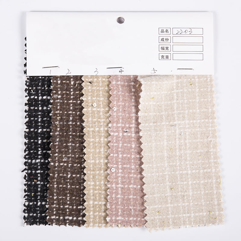 ผ้าทวีตลายตารางเลื่อมลายตาราง 2203 เป็นผลิตภัณฑ์ผ้าที่ผลิตจากเส้นใยเคมีคุณภาพสูง 100% ผ้านี้ผสมผสานความทนทาน ทนต่อรอยยับ และลักษณะดูแลรักษาง่ายของเส้นใยเคมีเข้าด้วยกันได้อย่างลงตัวด้วยเทคโนโลยีสิ่งทอขั้นสูง ทำให้ผ้าสามารถรักษารูปทรงและเนื้อสัมผัสเดิมได้หลังจากใช้งานเป็นเวลานานและซักบ่อยครั้ง คุณสมบัติหลักของเนื้อผ้าอยู่ที่ดีไซน์ลายตารางหมากรุกอันเป็นเอกลักษณ์ องค์ประกอบเลื่อมกระจายอย่างสม่ำเสมอบนพื้นผิวของผ้าผ่านกระบวนการฝังแบบละเอียด ซึ่งไม่เพียงแต่ช่วยเพิ่มชั้นการมองเห็นของผ้า แต่ยังแสดงเอฟเฟกต์ความแวววาวที่ละเอียดอ่อนและไม่สำคัญภายใต้แสง เพิ่มไฮไลท์ที่เป็นเอกลักษณ์ให้กับ เสื้อผ้า. ลายตารางหมากรุกใช้การจับคู่สีและการจัดวางแบบคลาสสิก ซึ่งไม่เพียงแต่ยังคงเสน่ห์แบบย้อนยุคของผ้าทวีตเท่านั้น แต่ยังรวมเอาความเรียบง่ายและบรรยากาศของการออกแบบที่ทันสมัย เพื่อให้ผ้าสามารถแสดงรูปลักษณ์ที่หรูหราและมีสไตล์ในโอกาสต่างๆ ในแง่ของเนื้อผ้า ผ้าทวีตลายตารางหมากรุก 2203 ด้วยกระบวนการทอผ้าทวีด ทำให้ผ้ามีความรู้สึกสามมิติที่สมบูรณ์และสัมผัสที่ละเอียดอ่อน การเลือกใช้เส้นใยเคมีทำให้เนื้อผ้ามีความนุ่มสบาย ในขณะเดียวกันก็ระบายอากาศได้ดีและทนทานต่อการสึกหรอ ทำให้ผู้สวมใส่มั่นใจได้ว่าจะได้รับความสบายและความสะดวกสบายในขณะที่เพลิดเพลินกับความงามของแฟชั่น ผ้าทวีดลายตารางหมากรุก 2203 ยังมีความเป็นพลาสติกและการนำไปใช้งานที่สูงมากอีกด้วย ไม่ว่าจะใช้สำหรับแฟชั่นระดับไฮเอนด์ที่กำหนดเองหรือเครื่องประดับสำหรับการสวมใส่ในชีวิตประจำวัน ผ้าสามารถผสมผสานสไตล์การออกแบบที่หลากหลายและข้อกำหนดในการตัดเย็บได้อย่างสมบูรณ์แบบ โดยแสดงเสน่ห์ของแฟชั่นที่แตกต่างกัน